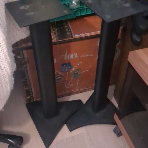 4 stk høyttalerstativ selges. Høyden er 52 cm og topplaten er 22x19. Sender ikke så må hentes.
