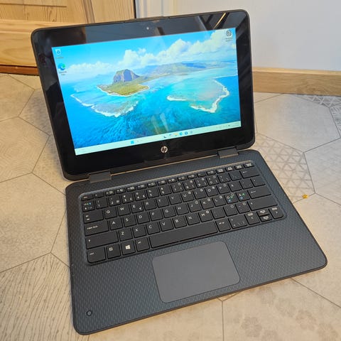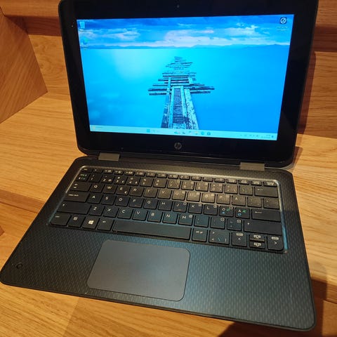 Selger denne HP ProBook x360 11 G1 EE convertible bærbar PC fordi jeg ikke har bruk for den lenger. Batteriet er litt dårlig og lader til max 50%. Lader følger med om ønskelig. Hjørnet ved bak kameraet har en liten bulk, så dette kameraet fungerer ikke.