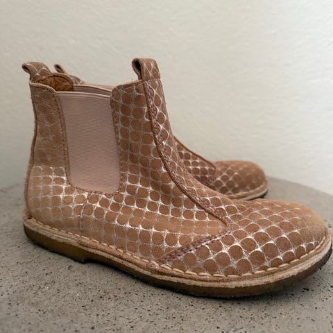 Bisgaard chelseaboots for jente i størrelse 30. Skoene er i rosa skinn med prikket struktur og elastikk i sidene for enkel av- og påkledning. Modellen har hemper foran og bak, samt fleksibel yttersåle. Egnet som hverdagssko i overgangssesonger for barn som bruker størrelse 30.