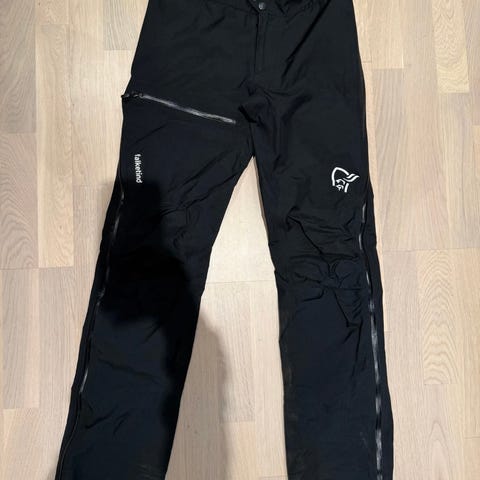 Norrøna Falketind Flex1 bukse for dame i størrelse XS. Buksen er svart (farge: Caviar) og laget i et fleksibelt softshellmateriale (Flex1). Den har glidelåslommer foran og bak, glidelåser langs bena for ventilasjon og knapper for justering av bredde nederst på bena, samt beltehemper og borrelåsregulering av livvidde. Egnet som tur- og friluftsbukse i variert vær og til allsidig utendørs bruk.