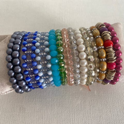 Accessorize armbånd for dame. Armbåndene består av perler i ulike farger, egnet som tilbehør til hverdagsbruk eller til mer pyntede anledninger. Elastisk utforming gjør dem enkle å ta av og på, og de kan brukes enkeltvis eller sammen for et lag-på-lag-uttrykk.