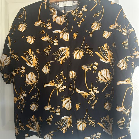 Blusen har et utrolig fint snitt og stoffet faller tungt.