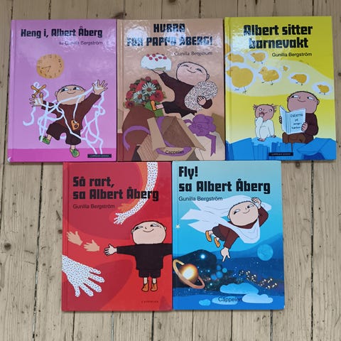 Samling med flere klassiske Albert Åberg bøker. Bøkene har fargerike omslag og illustrasjoner, og inneholder ulike historier om Albert Åberg og vennene hans. Passer som høytlesningsbøker eller for barn som har begynt å lese selv. Format: innbundne bildebøker i standard barnebokstørrelse.