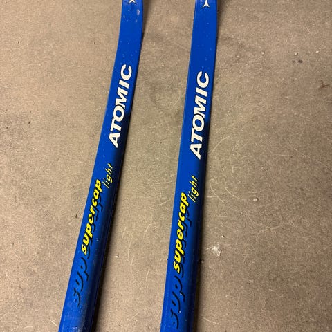 Atomic smøreski / langrennski med binding. Klassiske langrennski med rød, blå og sølv fargekombinasjon. Skiene har integrerte NNN bindinger som passer til klassisk langrenn.