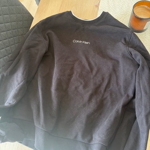Calvin Klein Jeans genser for herre i størrelse L. Den har rund hals med ribbestrikket kant og ribb nederst på ermer og i livet. Calvin Klein Jeans logo er plassert på brystet. Passer til hverdagsbruk og kan kombineres med både jeans og joggebukse. Trenger bare å bli strøket så er den god som ny ☺️