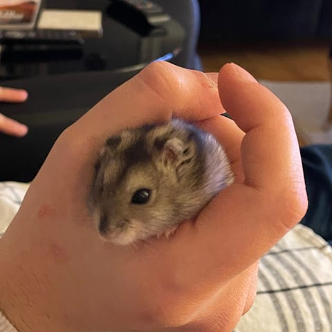 Et år gammelt hamster som søker nytt hjem.