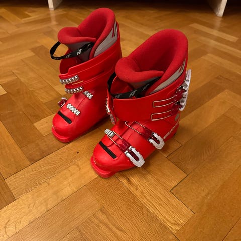 Salomon alpinstøvler i rød farge i størrelse 23.5. Støvlene har fire justerbare spenner i metall for god tilpasning rundt fot og legg. Myk innersko gir komfort og støtte. Passer til alpint bruk i preparerte bakker. Egnet for brukere som trenger en mindre skallstørrelse rundt 23.5 mondopoint.