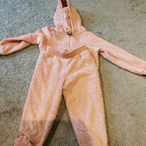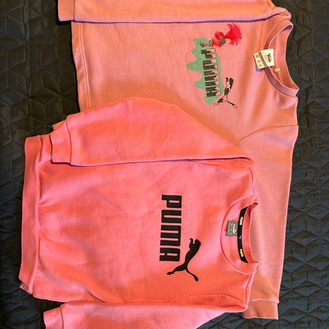 Jeg selger et brukt Puma-sett til jenter i størrelse 104. Genseren er knapt brukt, så den er i veldig god stand, men buksene har blitt brukt mer, så de har en flekk på kneet som jeg ikke har prøvd å fjerne, og de er litt lysere i fargen. Kommer fra et røykfritt og dyrefritt hjem.