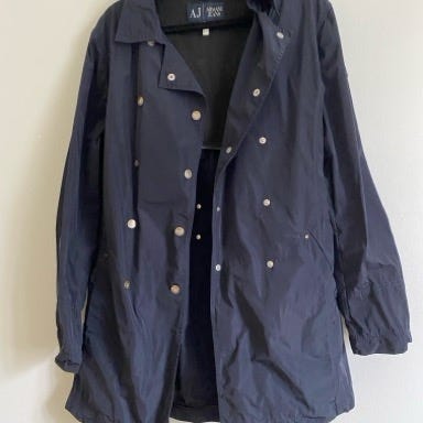 Selger en klassisk vindjakke/ foret jakke fra Armani. Den har dobbel glidelås, men dessverre mangler jeg hetten. Men jakken er fin uten hette!