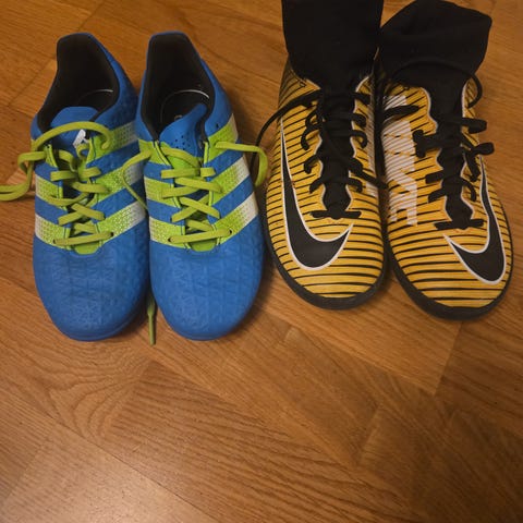 To par fotballsko i str 36 og 36-1/2 Fine i formen og lite slitt. 100kr pr par.