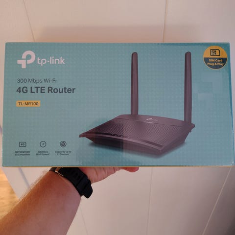 TP-Link TL-MR6400 4G LTE router med støtte for mobildata via SIM-kort. Ruteren har en teoretisk hastighet på opptil 300 Mbps og to eksterne antenner for bedre signalmottak. Egnet for trådløs internettforbindelse i hjem, hytte eller mindre kontor der fast bredbånd ikke er tilgjengelig eller som alternativ til vanlig bredbåndsløsning.
