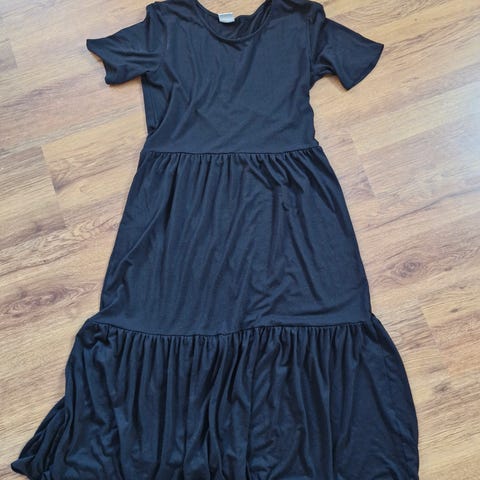 Lang kjole i størrelse M, men jeg synes den er litt romslig i størrelsen.