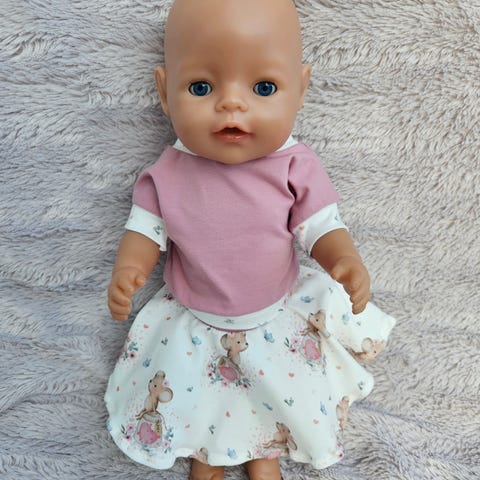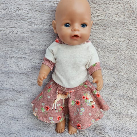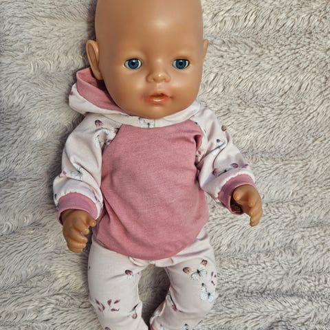 Tre delt klespakke sydd til Baby Born i jersey stoff