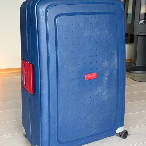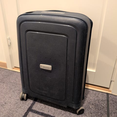 Kofferten er godt brukt. Stoffet har bruksmerker, se bilder. Hjulene er utslitt men kan skiftes.