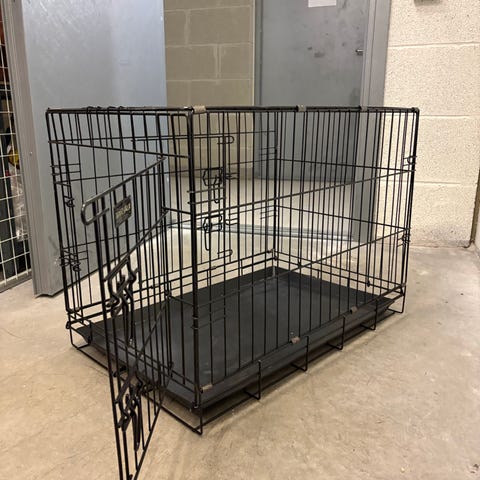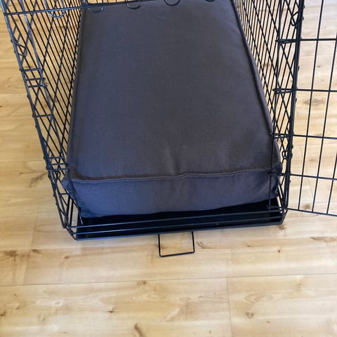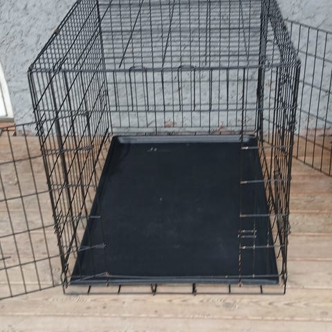 Hundebur, lengde 91 cm, bredde 57 cm og høyde 65 cm.