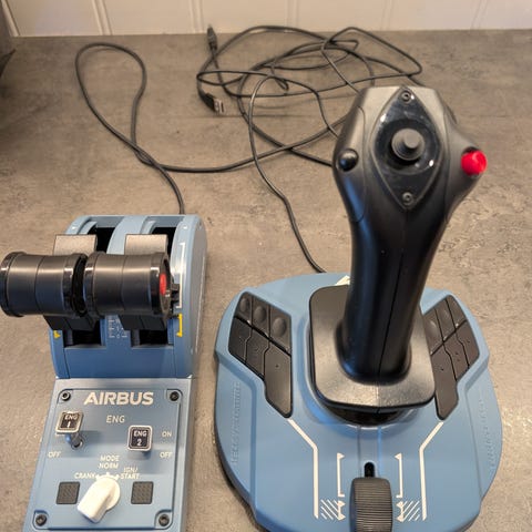 Thrustmaster joystick i Airbus-inspirert utførelse.