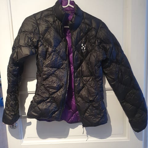 Haglöfs dunjakke for dame i størrelse XL. Jakken har hel glidelås foran og vattert, quiltet mønster som gir jevn fordeling av isolasjonen. Farge svart. Passer til hverdagsbruk og ulike utendørsaktiviteter i kjølige temperaturer.