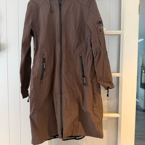 Ilse Jacobsen Raincoat regnjakke for dame i størrelse M. Jakken er grønn og laget i polyester. Modellen er knelang med glidelås i front og sidelommer med glidelås. Den har hette og ekstra glidelåslomme på ermet. Ytterstoffet er glatt, mens innsiden har mykere materiale for økt komfort. Egnet som regntøy i hverdagen og til bruk i vått vær.