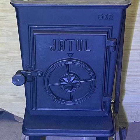 Til Salgs Restaurert Jøtul 602. Denne er steinsatt I sidevegger og bakplate for god lagring av varmen. Ingen brennplater her som ikke holder mål. Hentes på Grinder. Kr 8500.