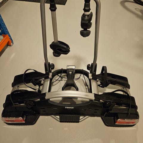13 pins kontakt. Sykkelstativ for vanlig tilhenger-feste. Lite brukt.