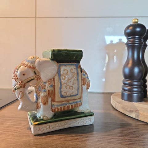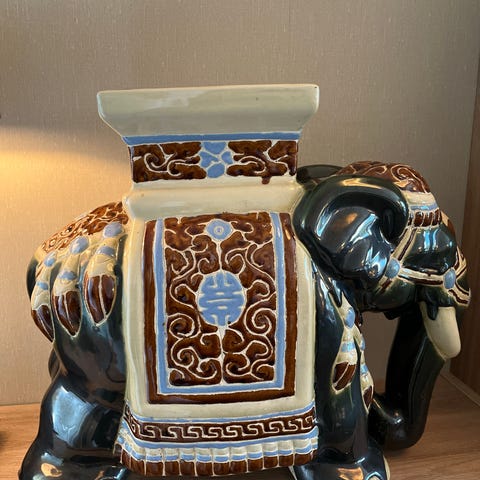 Nydelig elefant pidestall i keramikk. Høyde 28cm