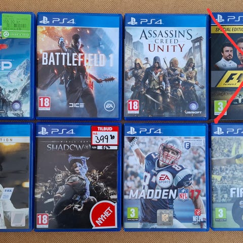 6 Playstation 4 spill selges samlet for 800kr pluss frakt