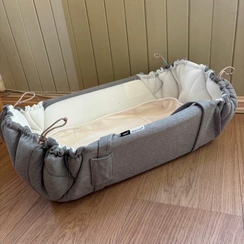 Voksi carry me i farge seashell sand/beige selges. Nestet er veldig pent brukt og ble kjøpt nytt av oss i fjor og kun brukt en kort periode til ett barn. Ingen merker eller antydning til bruk. Alltid vært brukt med beskytter i.