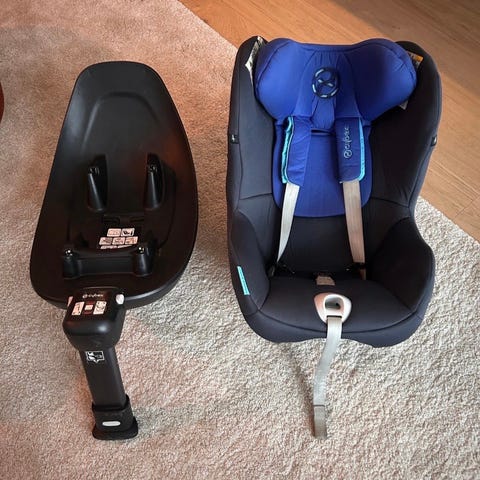 - Kan vendes 360 grader, enkelt å sette barnet inn i setet før det snus bakover