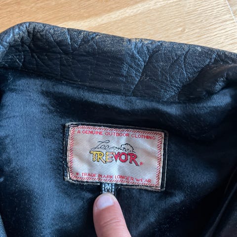 Grunnet alderen er det en del slitasje på jakken. Har fått fikset de værste ytre manglene hos skredder, men på innsiden har sømmene på liningen gått opp en del steder, på innsiden av arm åpningen og i armhulene spesielt. Samt noe slitasje i skinnet på en albuen. På utsiden på skinnet har sømmen på den ene armen gått litt opp på innsiden av albuen. Viser det meste av dette på bilder. Ingen av disse manglene har dog noe å si for hvordan den fremstår eller brukes - men blir reflektert i prisen.