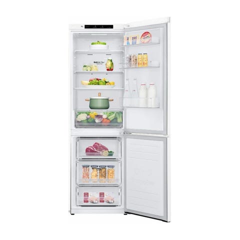 LG kombiskap i hvit utførelse. Kombiskapet har kjøledel øverst og frysedel nederst. Egnet for oppbevaring av matvarer i både kjøl og frys i husholdning eller lignende bruk.
