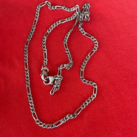 Pent sølvkjede stemplet 835S, med rundt anheng stemplet 925S.