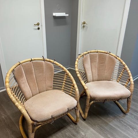 2 stk kurvstoler fra 1930-tallet. Blitt trukket om på 1970-tallet. Selges for 1000 kr stk, kan selges samlet for 1500 kr.