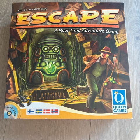 Escape brettspill. Sanntids eventyrspill der spillerne samarbeider om å komme seg ut av et tempel før tiden går ut. Spillet inneholder spillebrett/fliser, terninger, brikker og kort som brukes til å utforske tempelet, løse oppgaver og komme seg til utgangen. Passer for flere spillere og kan spilles på relativt kort tid per runde. Egner seg som familiespill eller for vennegjenger som liker samarbeids- og tidsbaserte spill.