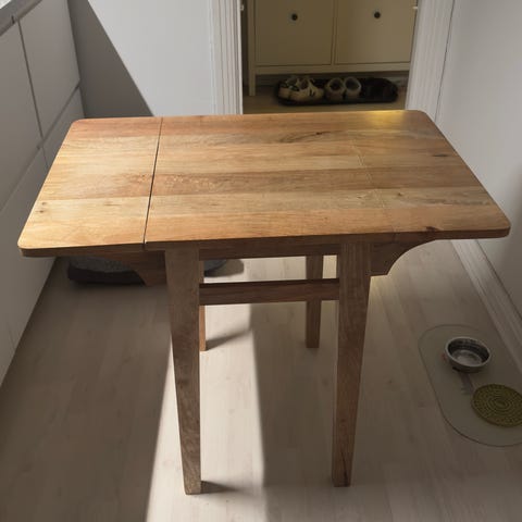 Praktisk klaffebord fra 1970 tallet. IKEA, designet av Karin Mobring. Utslåtte klaffer 150 cm, sammenslått 50 cm. Kan hentes.