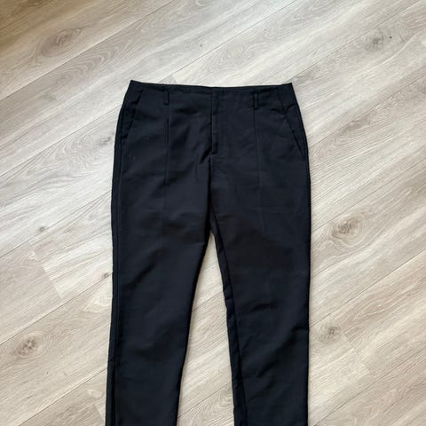 H&M bukse for dame i størrelse 44. Buksen er svart og laget i polyester. Modellen har glidelås og lukking foran, samt skrålommer i sidene. Passer som hverdagsbukse eller til enkel bruk på jobb og fritid.