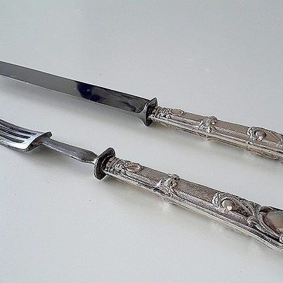 Sel eit flott og spesielt bestikksett kjøpt i Asia på 1960-talet av ein norsk sjømann. Settet er frå Mariners Shop, Klong Toi, Bangkok og kjem i original trekoffert med raud fløyelsinnlegg.