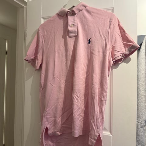 Ralph Lauren Polo pique for herre i størrelse M. Kortermet poloskjorte i blå farge, laget av bomull. Klassisk ribbestrikket krage og tre knapper. Pent brukt!