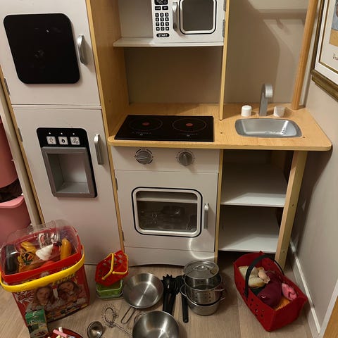 IKEA lekekjøkken med vask, kokeplate, grytesett og div