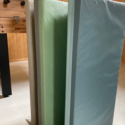 Sammenleggbar turnmatte i ulike grønntoner. Matten består av flere polstrede felt som kan brettes sammen for enkel lagring og transport. Egnet som underlag til turn, lek, trening eller annen aktivitet på gulv. Overflaten er glatt og lett å tørke av, og tykkelsen gir støtdemping ved bruk. Passer til innendørs bruk på harde gulv som parkett eller lignende. (Tekst AI-generert)