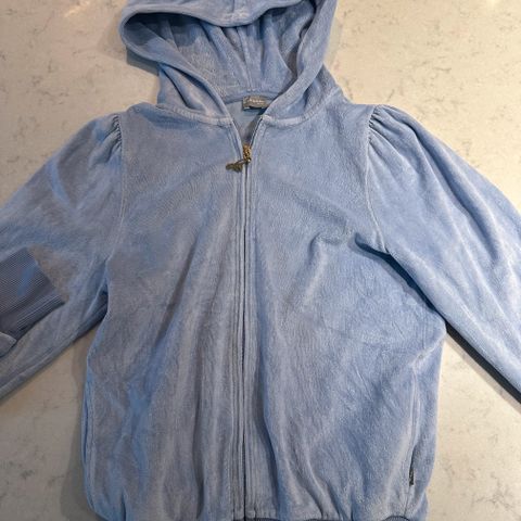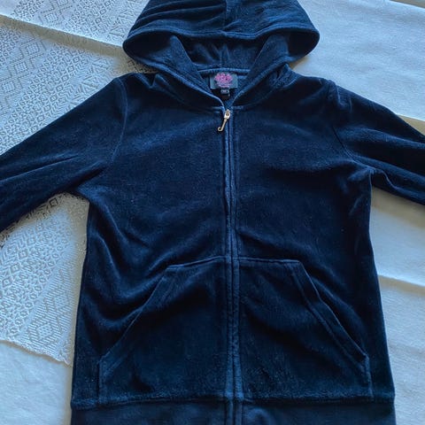 Pent brukt vilje og ve velour joggedress i marineblå selges for 300 samlet.