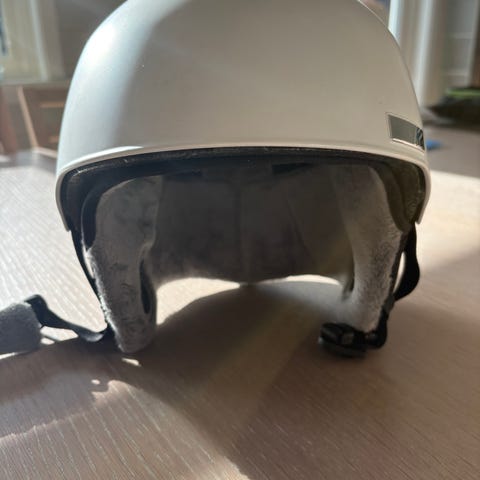 Hjelmen er brukt en dag i bakken bare og er å betrakte «som ny».