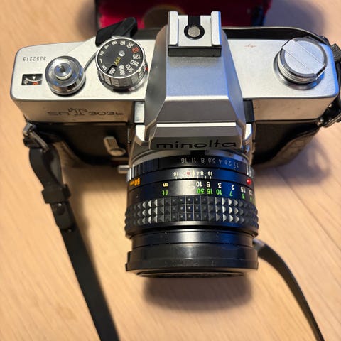 35mm filmkamera med Super-Takumar 55mm F1.8 objektiv. Klart og fint glass.