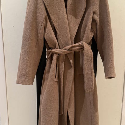 Zara kåpe for dame i størrelse S. Kåpen er beige. Modellen har klassisk krage og slag, knapper foran og lommer i sidene. Lengden går omtrent til under kneet, avhengig av høyde. Passer som yttertøy i overgangssesonger og milde vinterdager.