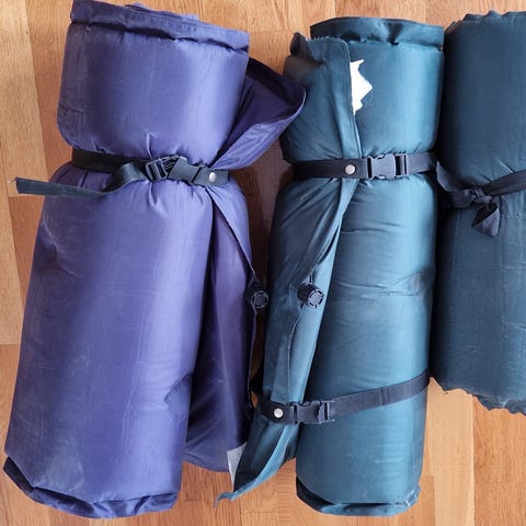 4 stk liggeunderlag selges. To stk er eldre selv oppblåsbare og fora underlag, et brett bart fra sportoutlet og en helt nytt rull med foliert bunn.
