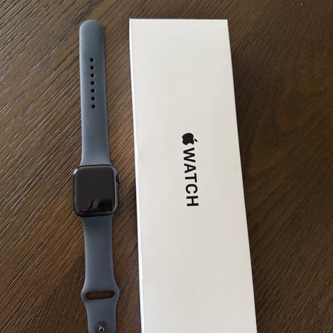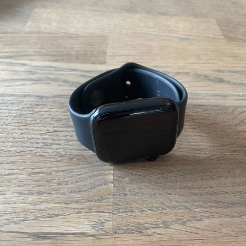 Apple Watch SE 44mm smartklokke i svart med reim i syntetisk materiale. Klokken har berøringsskjerm og pulssensor på baksiden. Leveres med original eske som vist på bildene. Egnet til daglig bruk, aktivitetsmåling og varsler fra tilkoblet iPhone.