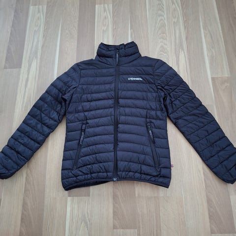 Svart tynn dunjakke, passer til vår/høst. Pent brukt, ingen hull eller slitasjemerker.