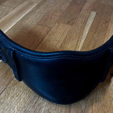 Rambo Micklem salgjord i brunt lær. Anatomisk utformet salgjord med myk polstring og avrundede kanter. Utstyrt med kraftige strikk i begge ender og doble rullespenner i metall for enkel justering. Midtstilt D-ring for feste av hjelpetøyler eller annet utstyr. Passer til bruk med sal på hest der det er behov for en anatomisk formet salgjord i lær.