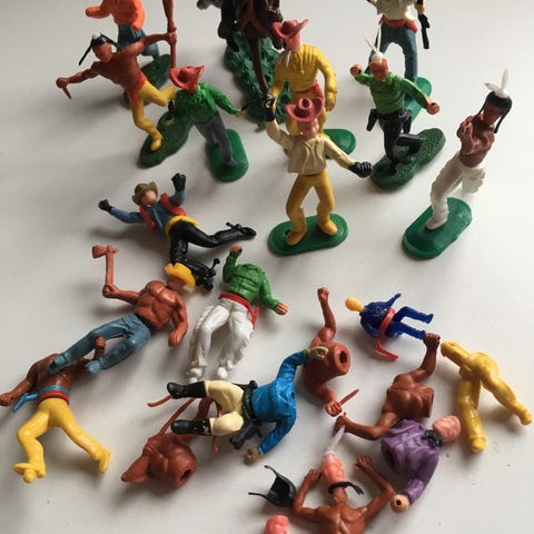 Figurer: Cowboyer, indianere og soldater i ulike positurer.