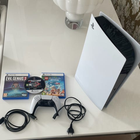 elger en PlayStation 5 Disk-versjon (modell CFI-1116A) med 825 GB lagring. Her får du en super pakke hvor absolutt alt du trenger for å spille følger med.