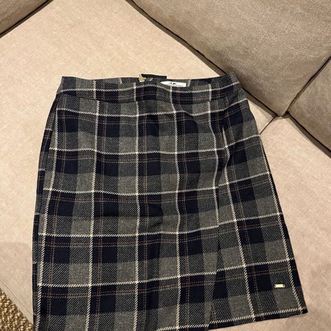 Fint dongeri skjørt med splitt forran. Lappen henger fortsatt på.